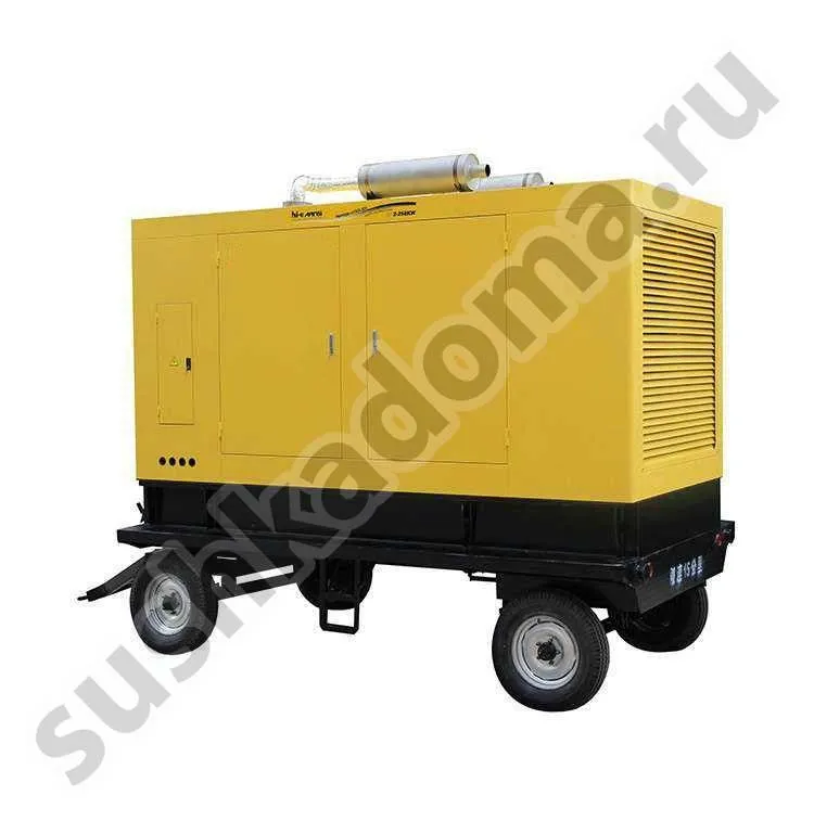 Мобильный дизельный генератор DG-M 250 кВт легко перемещается при помощи колес. Он отличается бесшумной работой, имеет водяное охлаждение и хорошо работает в условиях высоких нагрузок. Управление генератором осуществляется через цифровую панель, что позволяет легко контролировать все параметры установки.